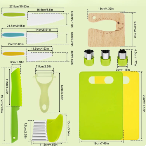 Un kit de cocina seguro y apto para niños que les permite cortar, rebanar y ayudar a preparar alimentos reales mientras desarrollan confianza, concentración e independencia.
